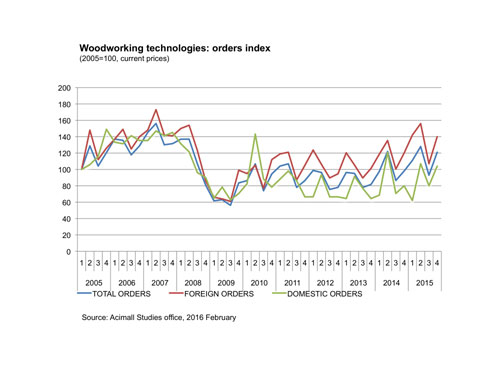 The year 2015 will not be remembered as a season of records, but for the Italian woodworking technology industry the past twelve months were undoubtedly better than expected. The trends based on the positive figures of the preliminary balance published by the association in mid-December (for convenience, see the table at the end of this press release) will probably be revised upwards, although it should be noticed that most orders coming in the fourth quarter will generate revenues in 2016.