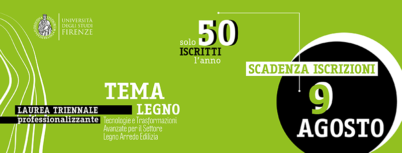 Aperte le iscrizioni per l’anno accademico 2019-2020 al corso di studi professionalizzante in TEcnologie e trasforMAzioni avanzate per il settore legno arredo/edilizia – TEMA Legno – istituito dall’Università degli Studi di Firenze. Le iscrizioni si sono aperte il 5/7/2019 e chiuderanno inderogabilmente il 9/8/2019.
