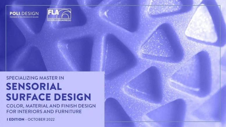 Il 30 maggio è stata presentata la prima edizione di “Sensorial Surface Design – Color, Material and Finish design for interiors and furniture”, il nuovo Master del Politecnico di Milano in programma a ottobre, gestito da POLI.design e svolto in collaborazione con Assopannelli di FederlegnoArredo che ha l’obiettivo di formare professionisti in grado di progettare e gestire le implicazioni percettive, sensoriali, emozionali e funzionali delle superfici, con particolare riferimento all’ambito degli interni e dell’arredo, nonché esperti di CMF design capaci di analizzare tendenze e trasformazioni per rispondere alle nuove esigenze dei settori produttivi e dei mercati.